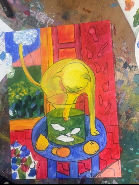Inspired by the art history and a drawing warm up, students will create their very own Cat & Red Fish inspired acrylic on canvas to take home!